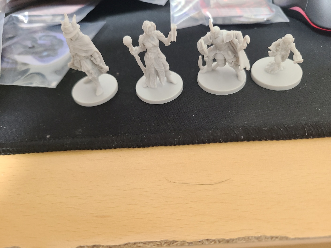 박스를 열자마자 느껴지는 압도적인 구성품의 양에 놀랐어요. 수많은 카드, 토큰, 미니어처들이 알차게 들어있습니다. 특히 캐릭터 미니어처들의 디테일이 상당히 뛰어나서 게임에 몰입하는 데 큰 도움이 됩니다.
