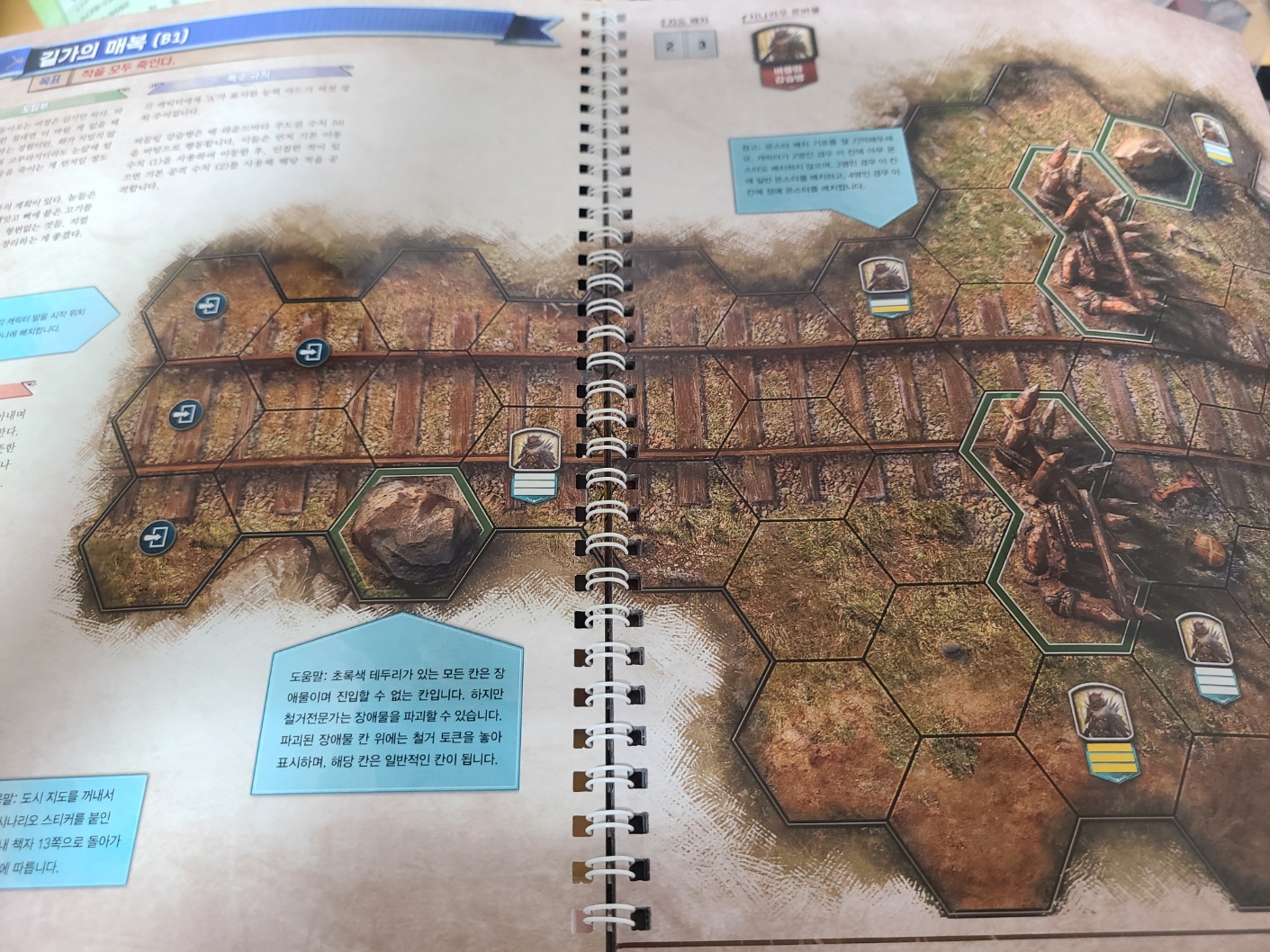 처음에는 룰 파악이 좀 어려웠어요. 매뉴얼이 꽤 두꺼운 편이라 숙지하는 데 시간이 필요했습니다. 하지만 일단 한 번 플레이하고 나면 의외로 흐름이 자연스럽게 이해되더라고요.