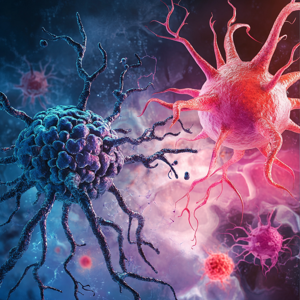 암은 세포가 자연적 사멸 과정을 거부하고 계속해서 증식하여 변형이 일어나 정상 기능을 방해하는 상태입니다. 반면 치매는 뇌 세포가 지속적으로 소실되는 현상을 보입니다. 이런 점에서 두 질환은 세포 생명 주기의 정반대 극단에 위치한다고 볼 수 있습니다.