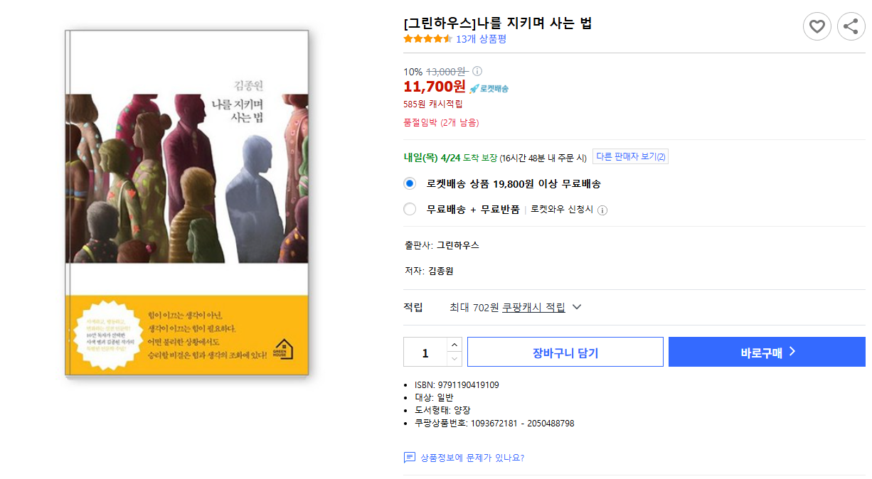 나는 이 말을 *『나를 지키며 사는 법』*이라는 책의 프롤로그에서 처음 봤다.