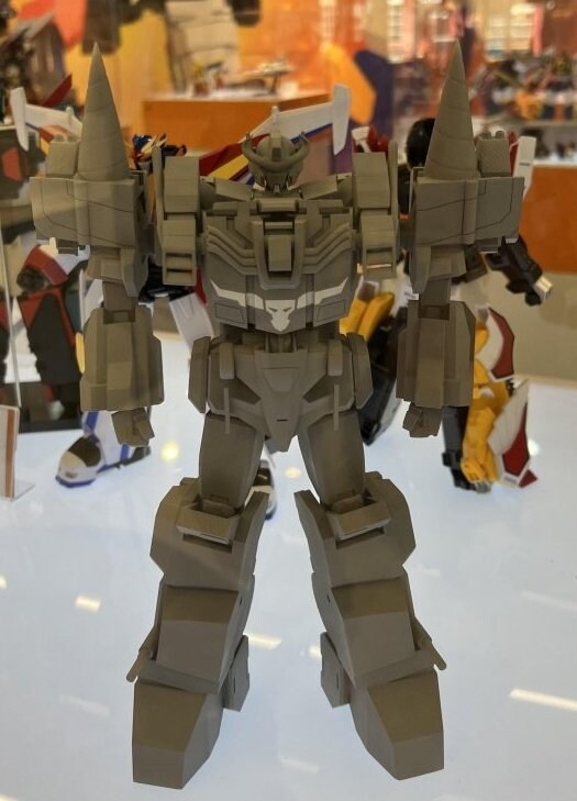 어릴 적 로봇 장난감을 좋아하셨던 분이라면 한 번쯤 들어봤을 ‘랜드바이슨’. 이번에 공개된 ‘더합체 랜드바이슨’은 원작의 매력을 유지하면서도, 디테일과 가동성 측면에서 현대적으로 재탄생한 제품입니다. 전시장에서 최초로 공개된 랜드바이슨은 회색 테스트샷임에도 불구하고 조형의 완성도와 묵직한 비율감이 매우 인상적이었습니다.