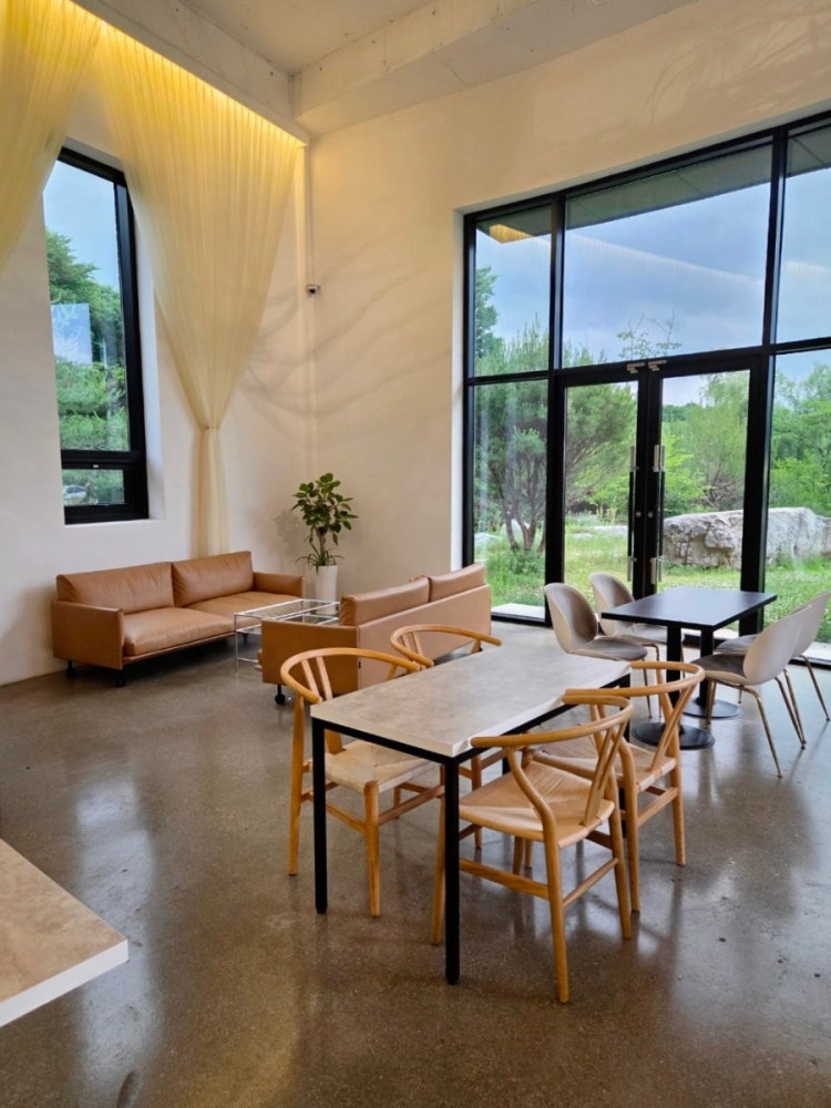 ‘디아나수풀’이라는 이름답게, 이곳은 초록이 가득한 자연과 넓은 마당이 인상적인 카페입니다. 카페 외관부터 고급스럽고 세련된 느낌이 풍기며, 입구로 들어서면 넓은 잔디밭과 파라솔이 놓인 테라스 공간이 펼쳐져 있어요. 실외 좌석도 마련되어 있어 날씨 좋은 날엔 바깥에서 커피를 즐기기 딱 좋아요.