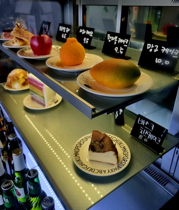 디아나수풀의 디저트와 음료 메뉴도 다양하고 매력적이에요. 쇼케이스에는 다양한 케이크와 타르트, 브라우니 등이 진열되어 있고, 비주얼부터 훌륭한 디아나의 시그니처 디저트도 꼭 맛보셔야 해요.