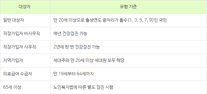 사무직 근로자: 2년에 1회 (매 짝수년도 출생자)