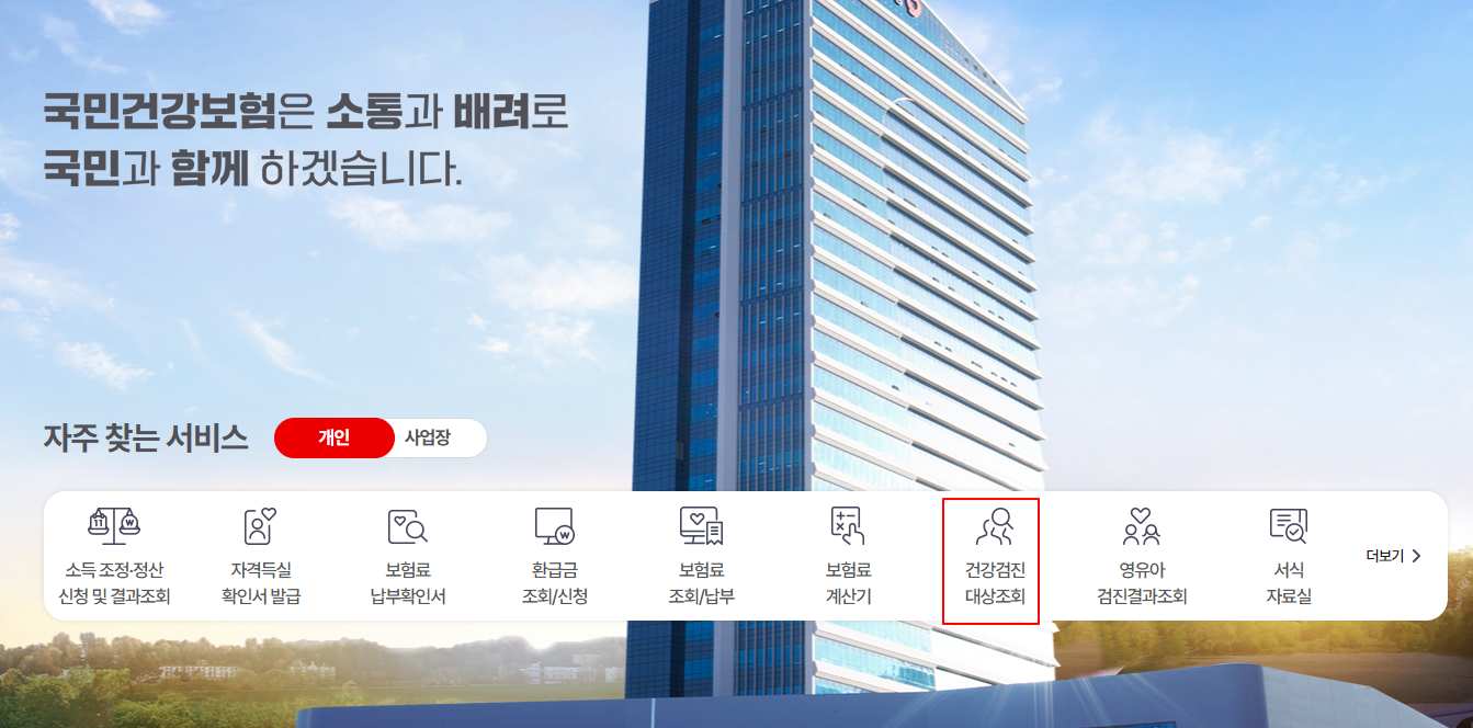 아래 이미지를 클릭하시면 건강보험관리공단 홈페이지로 이동됩니다.