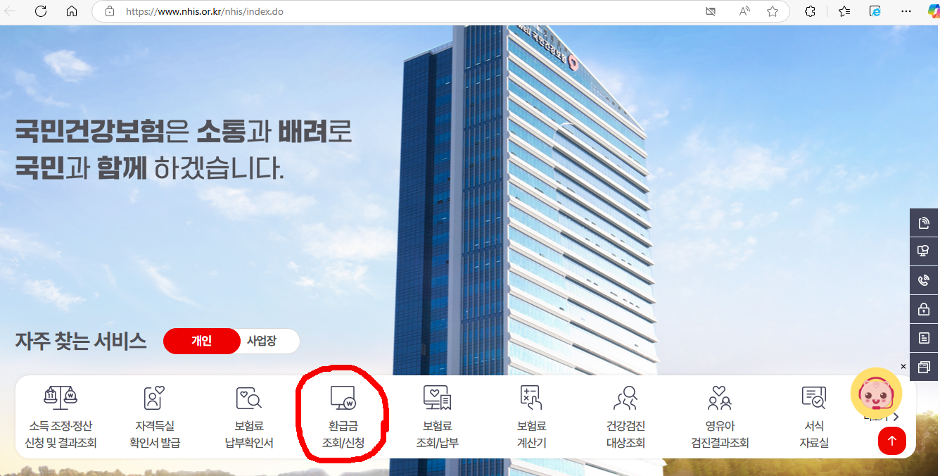 - 국민건강보험공단 홈페이지(https://www.nhis.or.kr)에 접속